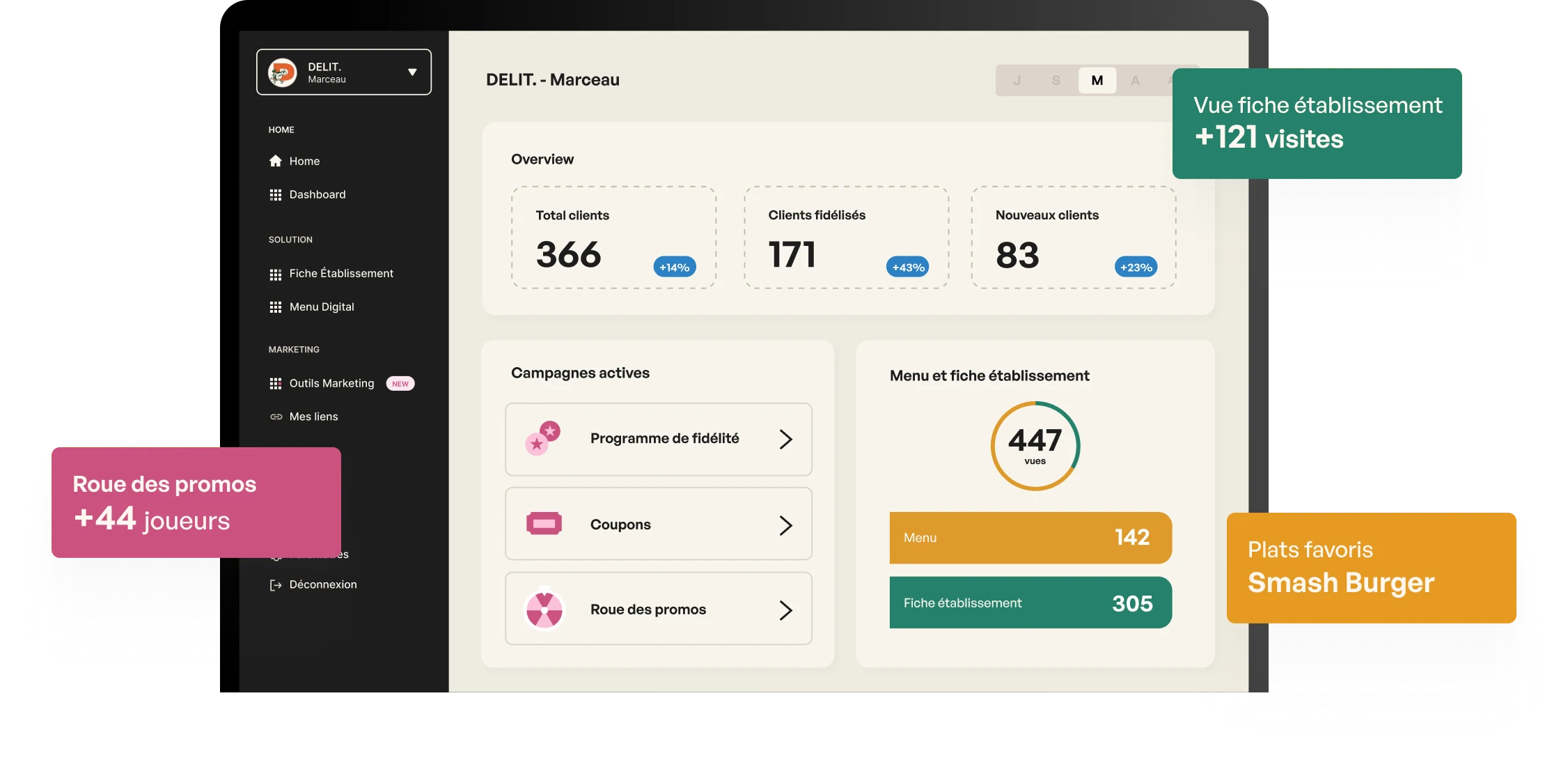 Lancez des campagnes ciblées, fidélisez plus efficacement et pilotez la croissance de votre restaurant.