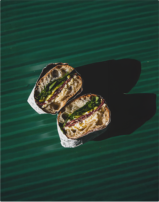 Chaque sandwich devient une oeuvre visuelle et gustative unique, identifiable par un dégradé de couleur signature inspiré des ingrédients qui le composent. Ce concept mise sur l’association entre design moderne et valeurs culinaires, apportant une forte identité esthétique et sensorielle.