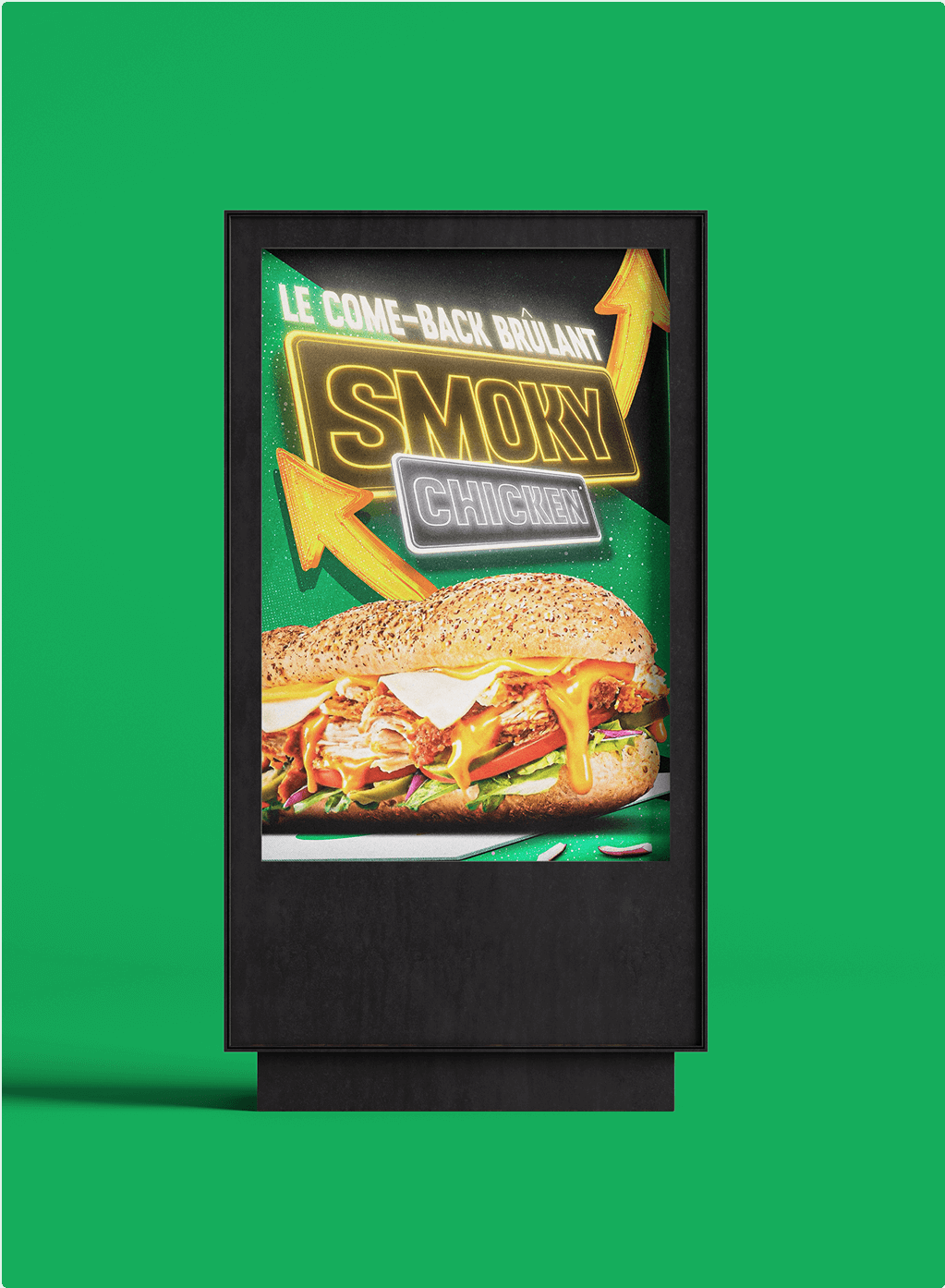 Pour cette collaboration avec Subway France, nous avons imaginé une campagne visuelle à fort impact, pensée pour capter l’attention d’une cible jeune et urbaine.